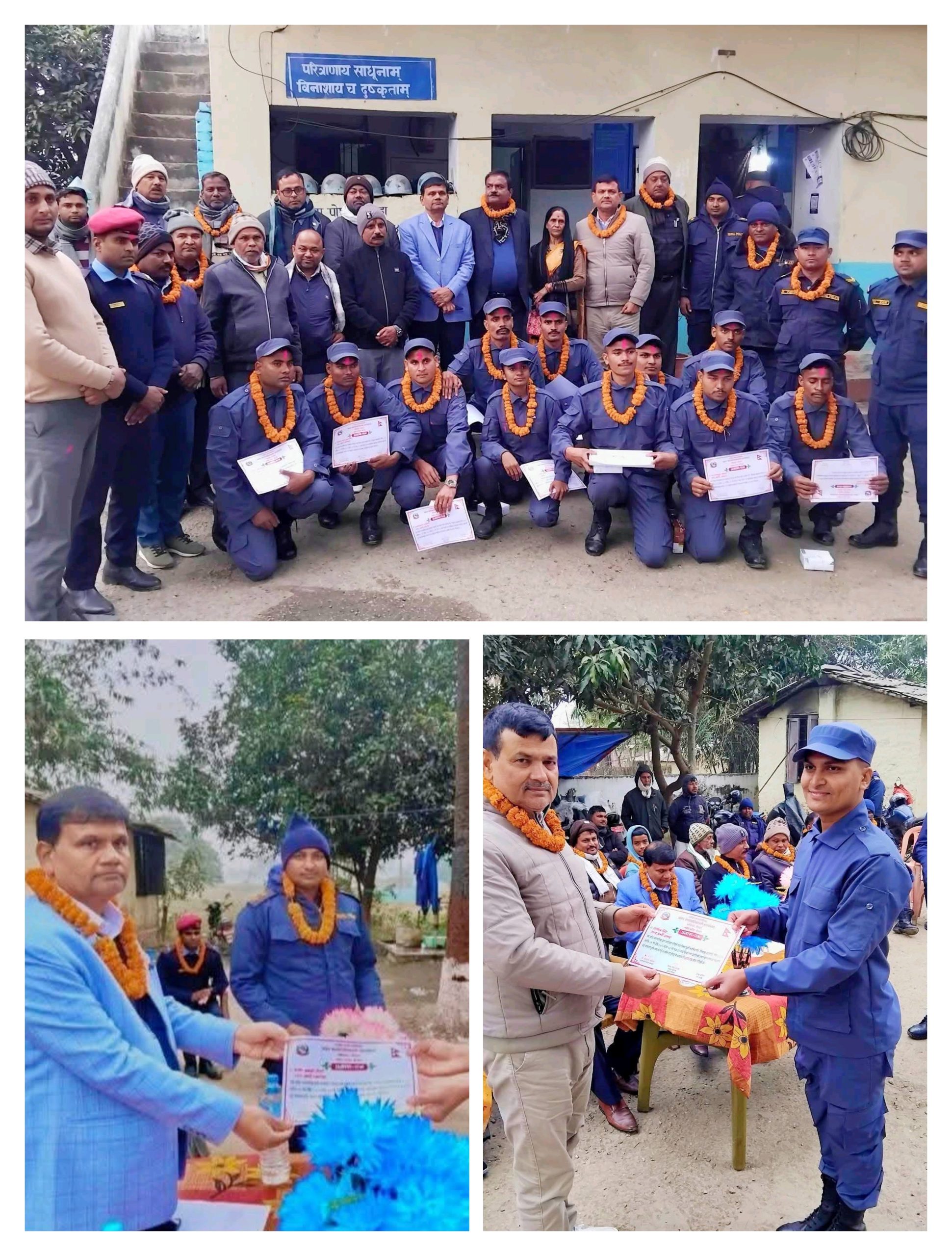 रौतहट । रौतहटको परोहा नगरपालिकामा नगर प्रहरीको एक महिने आधारभूत तालिम सफलतापूर्वक सम्पन्न भएको छ। तालिमको समापन अवसरमा आयोजित एक विशेष कार्यक्रमका बीच नवप्रशिक्षित नगर प्रहरीहरूलाई सम्मान तथा दीक्षित गरिएको छ।